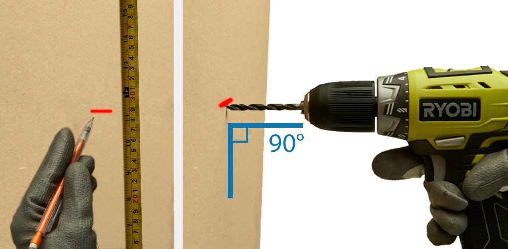 排队- 使用铅笔在表面上标记您要孔的表面,并以90度角将钻头固定在钻头上。