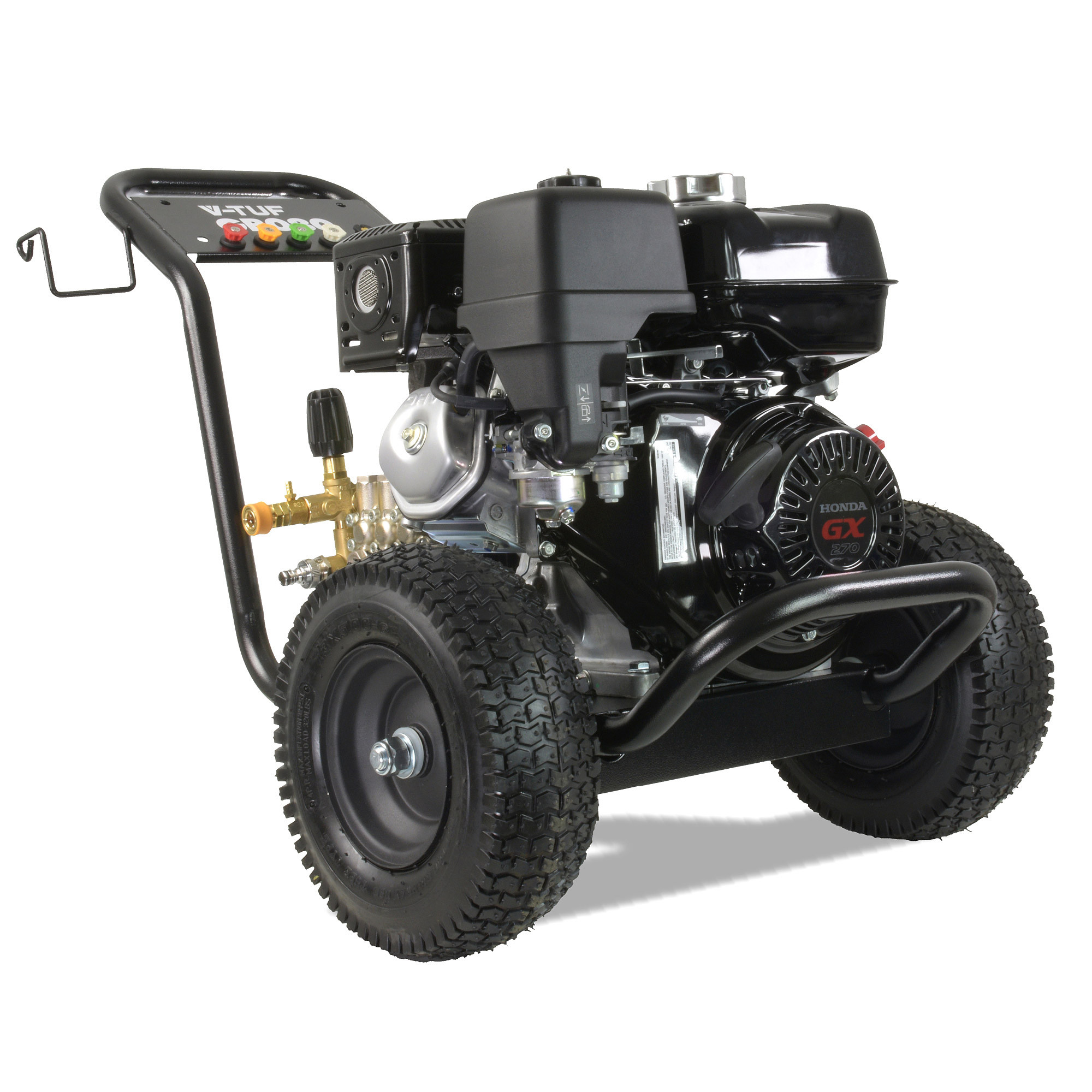 V-TUF GB080压力清洗机是根据流行的市场需求开发的,可以轻松地处理最艰难的清洁工作,提供了一种使用简单,移动,紧凑,可靠的压力清洗机。采用带齿轮箱的V-TUF压力清洗机,大大增加了泵的使用寿命,以及所有易损件,节省了用户长期维护的时间和金钱。它有一个坚固的刚性框架和大轮子,可以很容易地在所有类型的崎岖地形上运输。强大的9马力本田发动机提供2900psi的高压供水,这V-TUF压力清洗机的性能总是提供有效的清洁结果,无论在哪里需要!